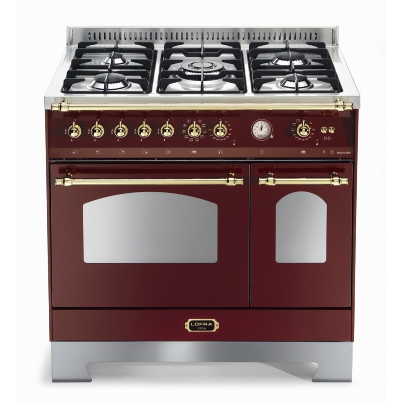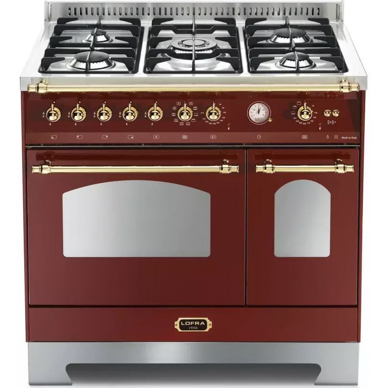 Aragaz Lofra Dolcevita RRD96MFTE/CI, 90x60cm, gaz, 5 arzatoare, grill, rotisor, timer, cuptor dublu, visiniu