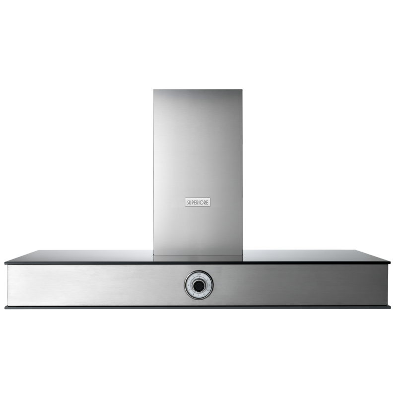 Superiore prezintă o hota cu un corp unic, exprimată prin corpul său din sticlă albă și oțel inoxidabil, cu fascia frontală îmbogățită de controlul analogic în stil retro.