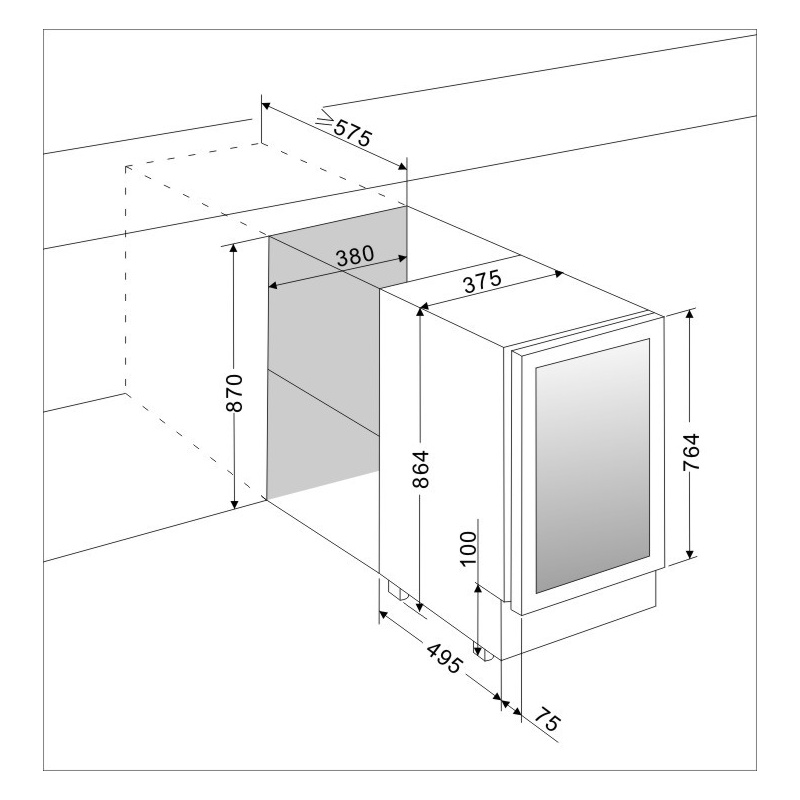 O vitrina incapatoare: depozitati 33 sticle (75 Cl.). Capacitate maxima: 43 sticle.